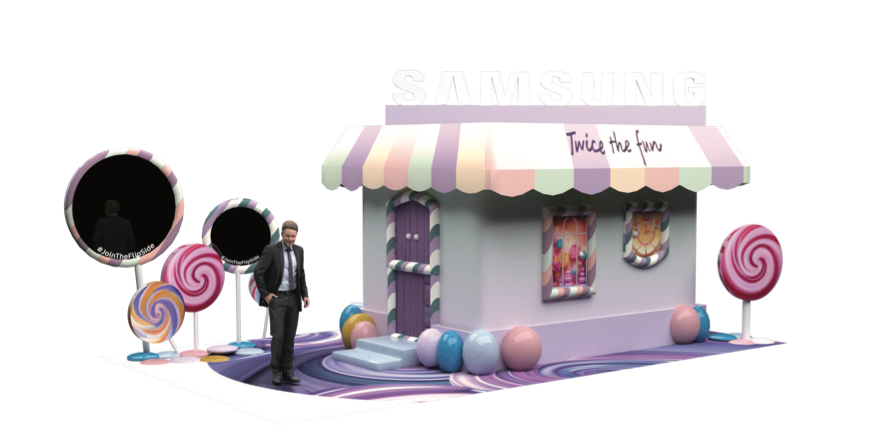 Client: Samsung Task: To design a candy house that has rooms with different elements to promote their Flip5